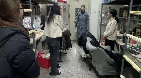 辅导员全面深入学生宿舍开展走访排查,重点核查校外住宿情况,细致了解学生假期生活、思想动态与新学期适应状况,主动倾听学业困惑、生活难题并及时帮扶疏导。同时全面排查宿舍私拉乱接、违规电器等安全隐患,现场督促整改,强化宿舍卫生整治,筑牢校园安全防线。
