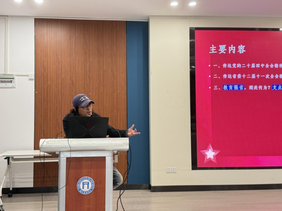 郝常委强调,要坚持理论联系实际的学风,要突出问题导向、实践导向、需求导向的工作方法。他从学院的发展脉络,自身的成长经验,师生的工作生活等实际出发,探讨学院建设的方法路径,号召师生紧密结合思想和工作实际,更加自觉用科学理论指导实践、推动工作。全体教职工要把学习贯彻四中全会精神作为当前和今后一个时期的重要政治任务,进一步统一思想、凝聚共识,将中央精神转化为推动学校高质量发展的具体举措,为建设教育强国、文化强国贡献智慧与力量。