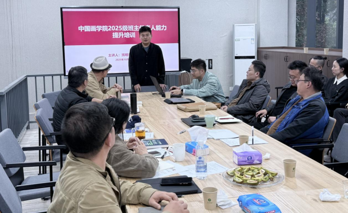 为深入学习贯彻习近平总书记关于教育的重要论述,进一步加强班主任队伍建设、提升育人能力,10月31日下午,中国画学院在会议室召开2025年秋季学期班主任育人能力提升培训会。湖北美术学院党委委员、中国画学院院长郝孝飞,党委副书记陈捷,副院长朱国栋、熊明非,全体班主任及辅导员参加会议。