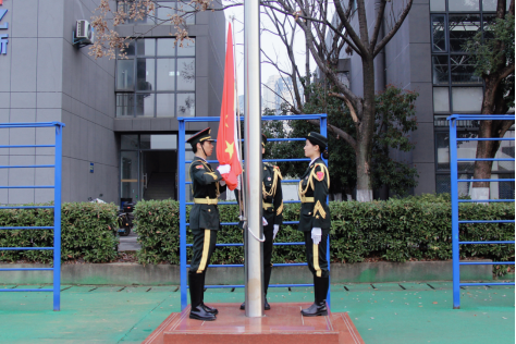 晨光之中,国旗护卫队步伐铿锵,五星红旗冉冉升起。全体师生肃立注目,高唱国歌,在庄严仪式中厚植家国情怀、凝聚奋进力量。