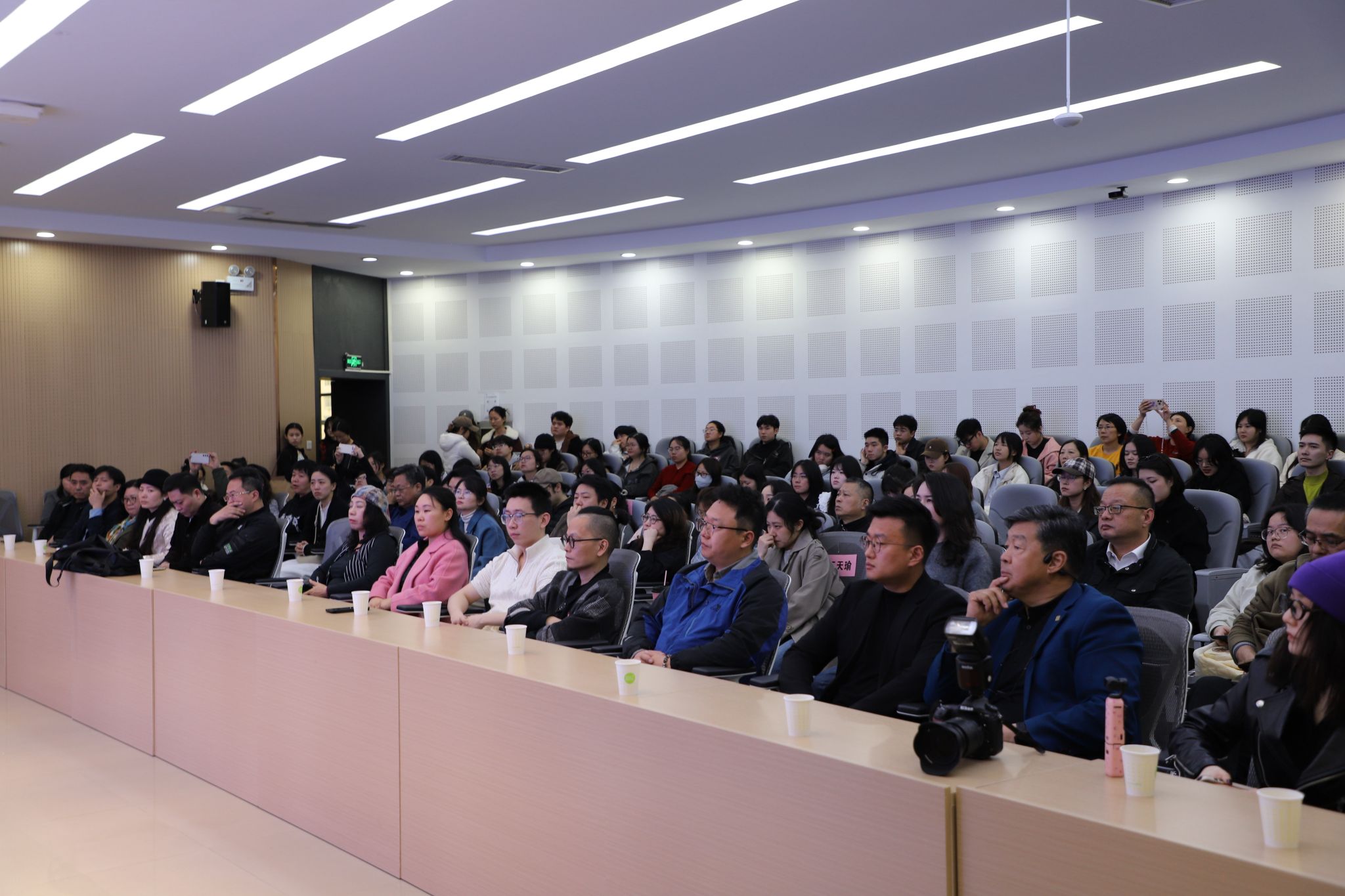在互动问答环节,学生踊跃提问。陈孟昕教授以实例分享了其艺术语言个性样式的形成过程及其能动性成因。他鼓励学生们要善于总结,能够分辨出自己的优势与短板,梳理出贴近心性的语言方式,并将优势最大化地升华与凝练,个性必在其中。他强调,应在“形似”的基础上创造“有意味的形”,在把握艺术规律的前提下找到自我。