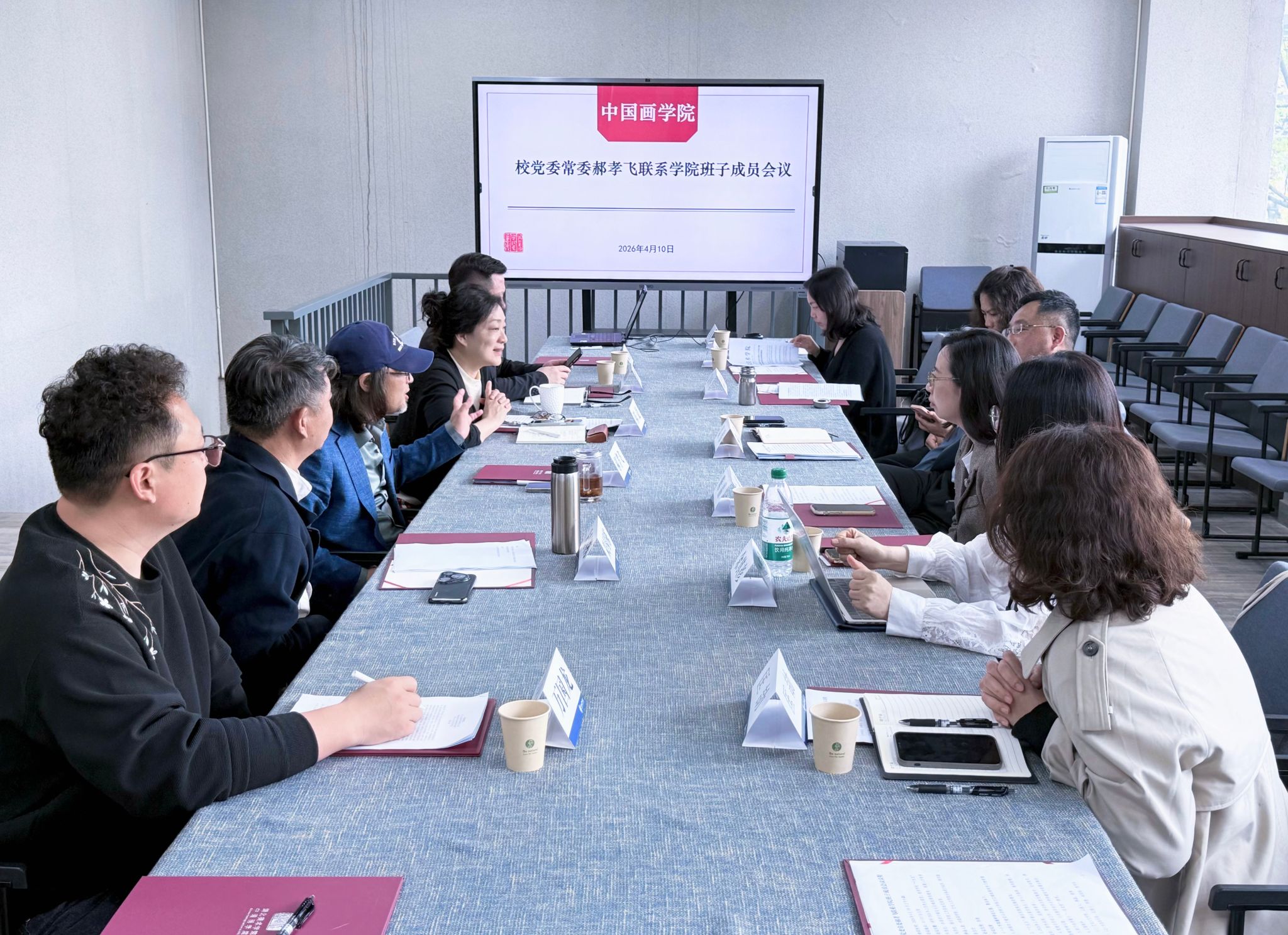 为深入贯彻落实学校“十五五”事业发展规划部署,统筹推进申博攻坚与学科建设重点任务,4月10日上午,校党委常委郝孝飞赴中国画学院、艺术人文学院开展专题调研,了解2026年工作要点落实情况,并就加强班子建设、树立和践行正确政绩观进行宣讲与部署。两院班子成员及相关系部负责人参加会议。